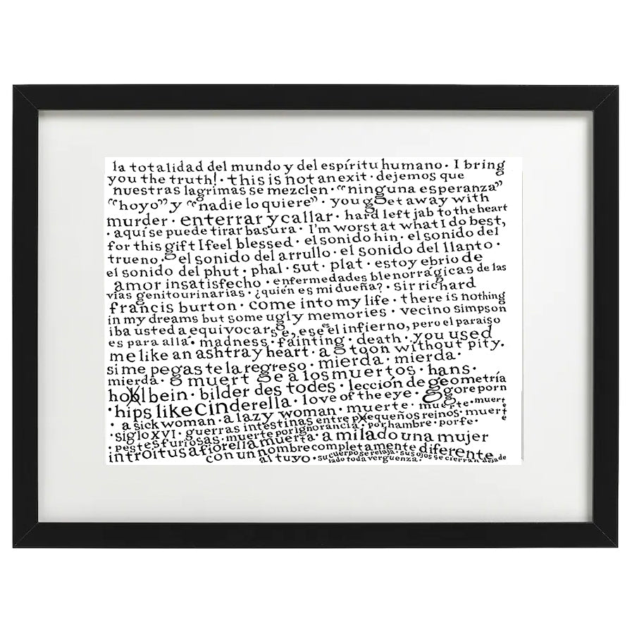 Esta serie reúne algunos de los textos que aparecen a lo largo de la publicación Katastrofe Pruffs, la cual contiene una selección de las pruebas de impresión que realizó Sánchez Rull para la creación de una carpeta de grabado. Como ocurre generalmente en su trabajo, caracterizado por la confluencia constante de textos e imágenes, la mayoría de las frases son citas que provienen de fuentes literarias y musicales, aunque algunas también son de su autoría. Estos textos fueron redibujados con tinta, reunidos en un solo lugar y multiplicados a través de una impresión serigráfica.
